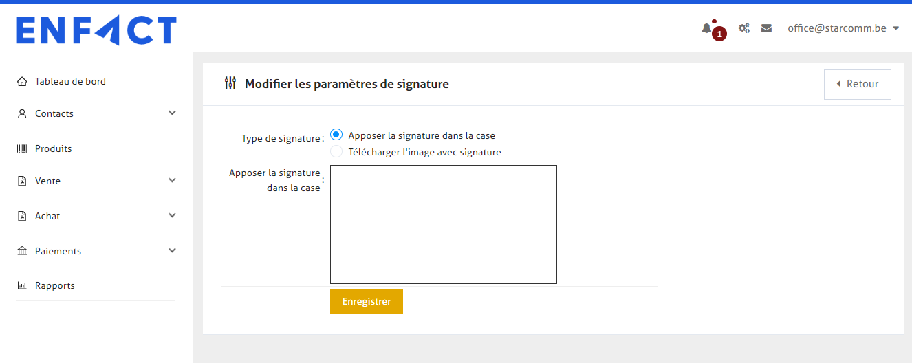 Simplifier et fluidifier l'administration de votre entreprise, tel est l'objectif principal de enFact. Pour vous faciliter encore plus la tâche, il est possible de signer vos documents en ligne, par voie électronique. Vos clients peuvent consulter et signer immédiatement les documents grâce à un lien sécurisé. Par exemple, le client n'a plus besoin d'imprimer et d'envoyer la copie d'une **offre commerciale**, il ou elle peut signer les **confirmations de commande** et les **bons de livraison** sur le s  via une tablette sur le site.