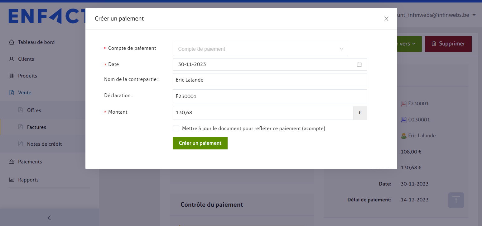 Cliquez sur "Créer un paiement" pour enregistrer les données.&#x20;