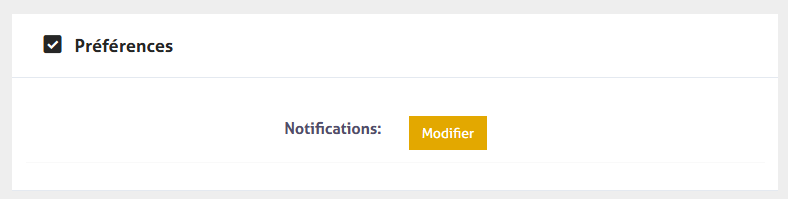 Dans vos « Paramètres personnels », vous pouvez également gérer ces notifications. Cliquez sur le bouton jaune à côté de « Notification » dans le bloc « Préférences » :
